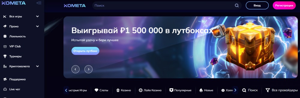 Если активировать в казино Комета промокод, то можно получить дополнительные презенты и ВИП-бонусы. Важно вовремя выполнять в Комета казино отыгрыш бонусов, ведь в противном случае они сгорят.